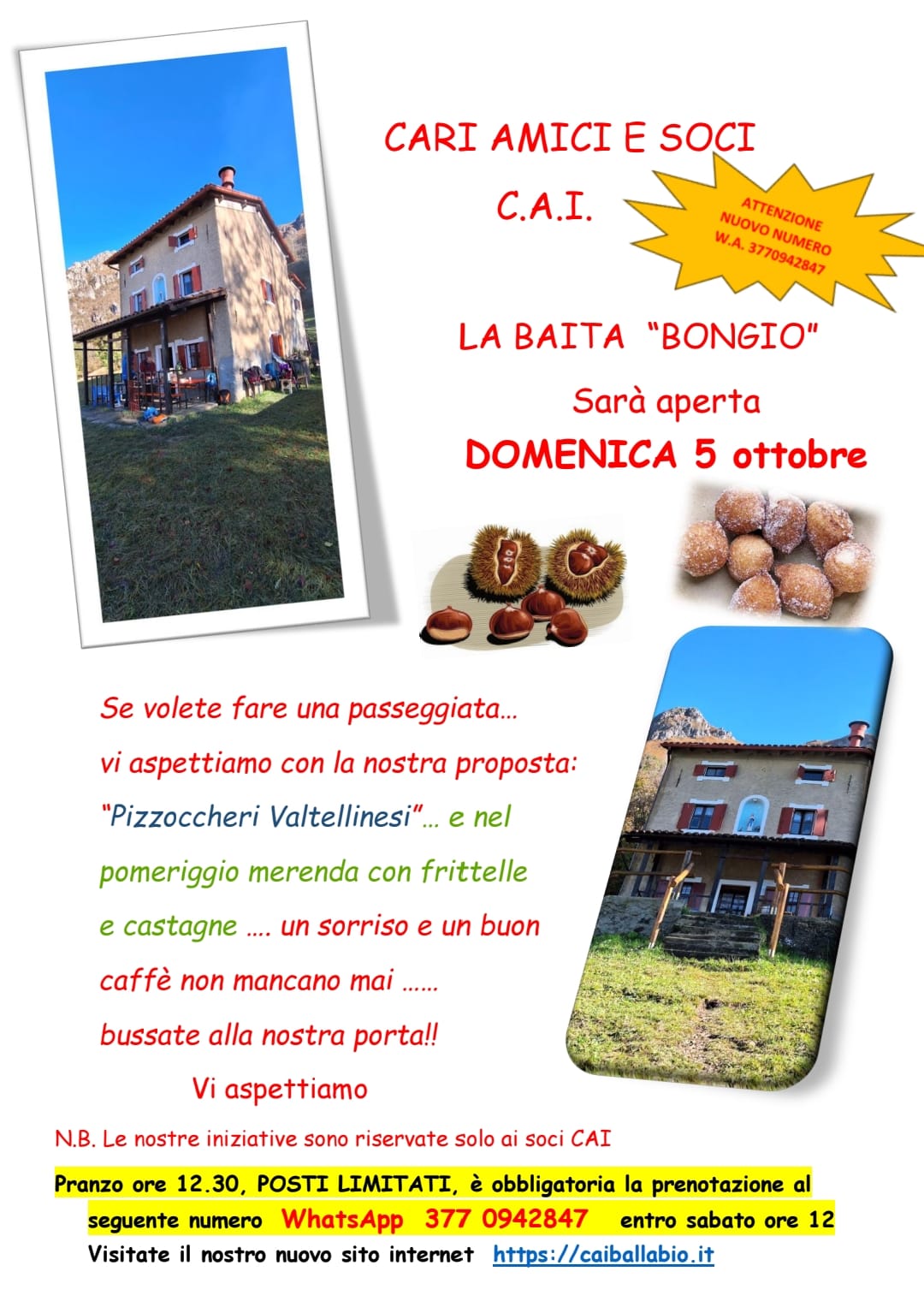 La Baita Bongio è aperta tutte le prime domeniche del mese!